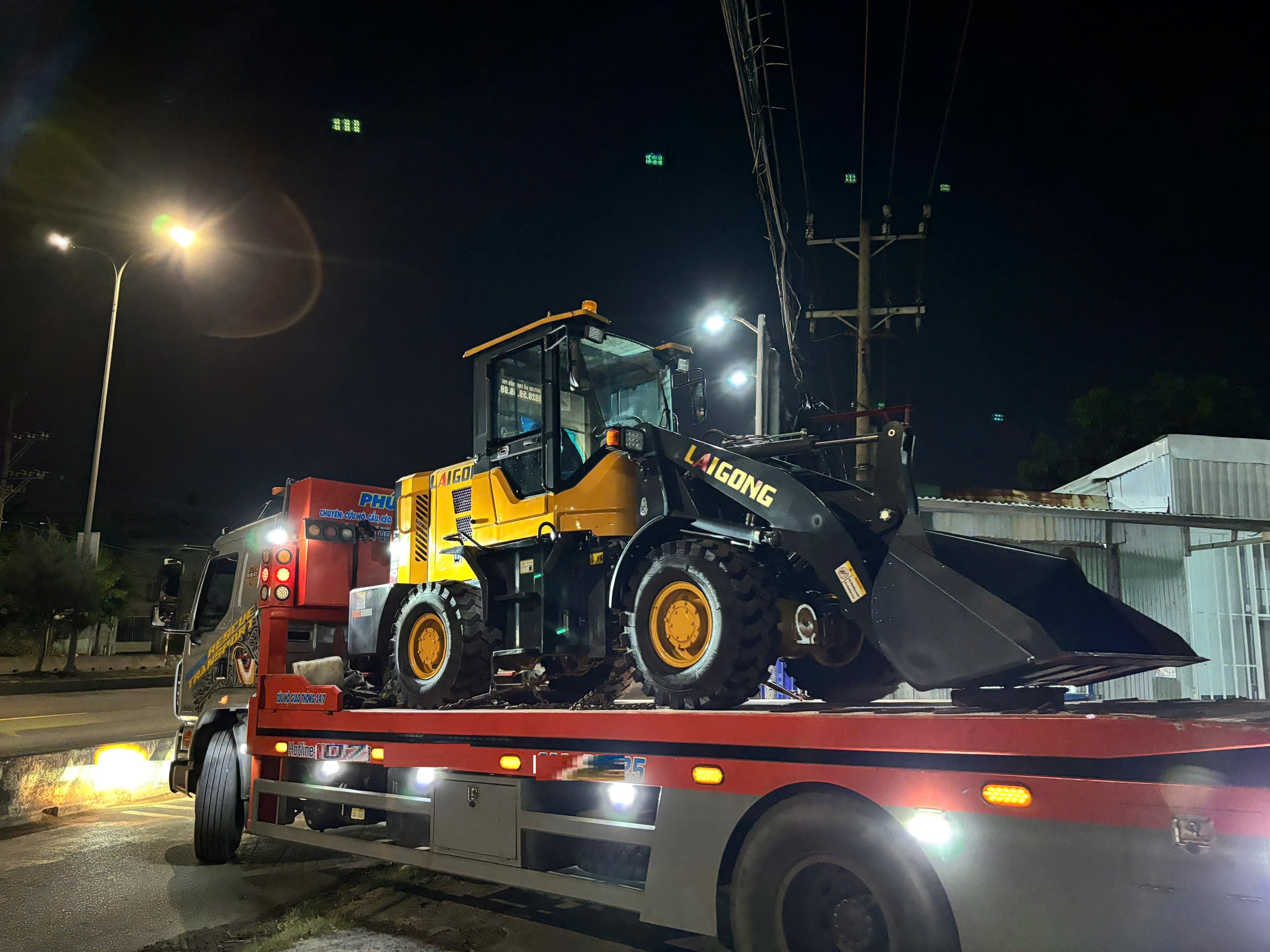 Máy được vận chuyển trên xe vận tải chuyên dụng. giúp đảm bảo an toàn cho thiết bị & dễ dàng xuống xe.