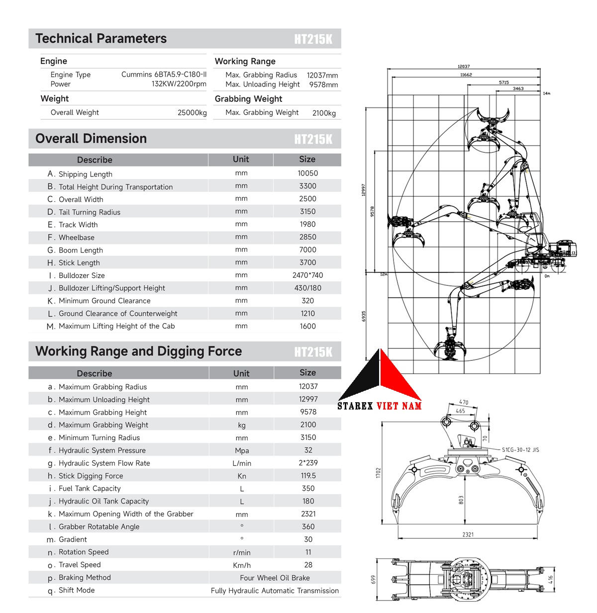 Chúng tôi xin giới thiệu: Máy gắp gỗ chuyên dụng Hengte HT215K với độ dài cần lên đến 13 mét