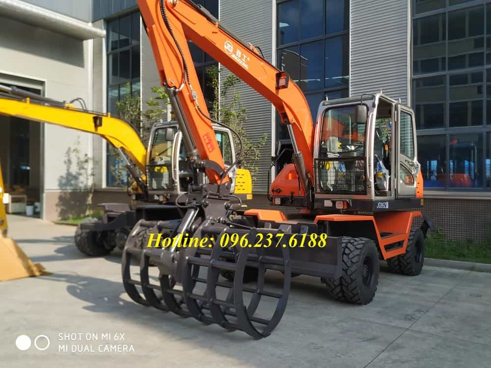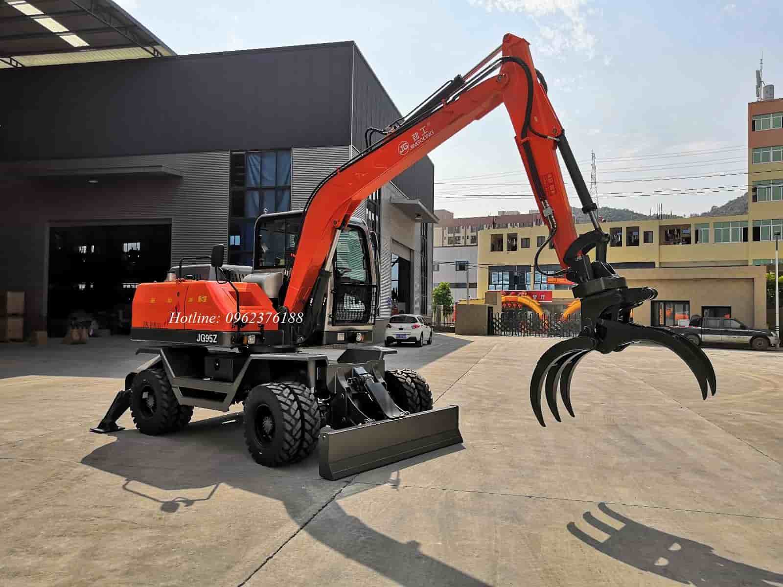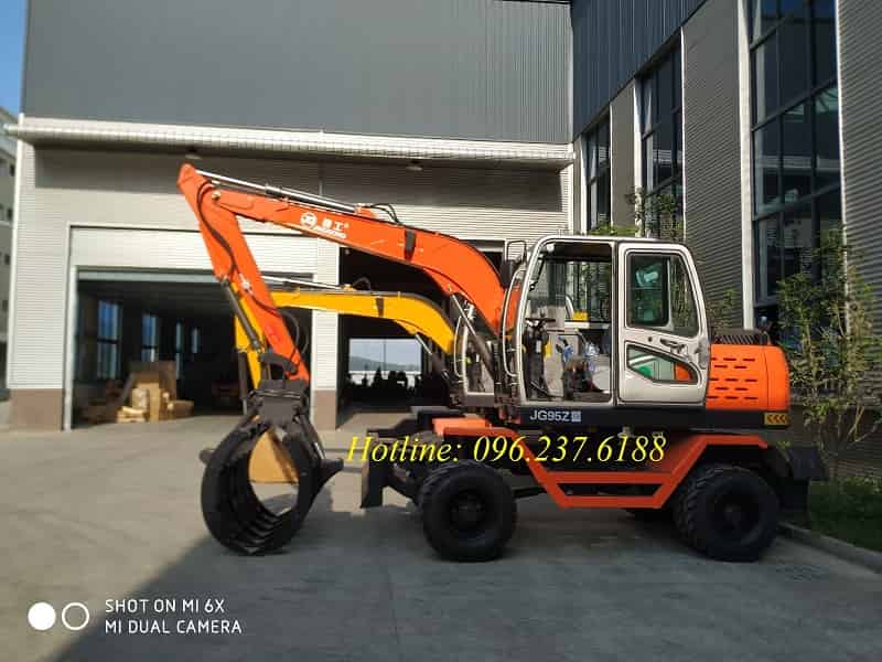 Máy xúc đào bánh lốp gắp gỗ Jinggong JG95S