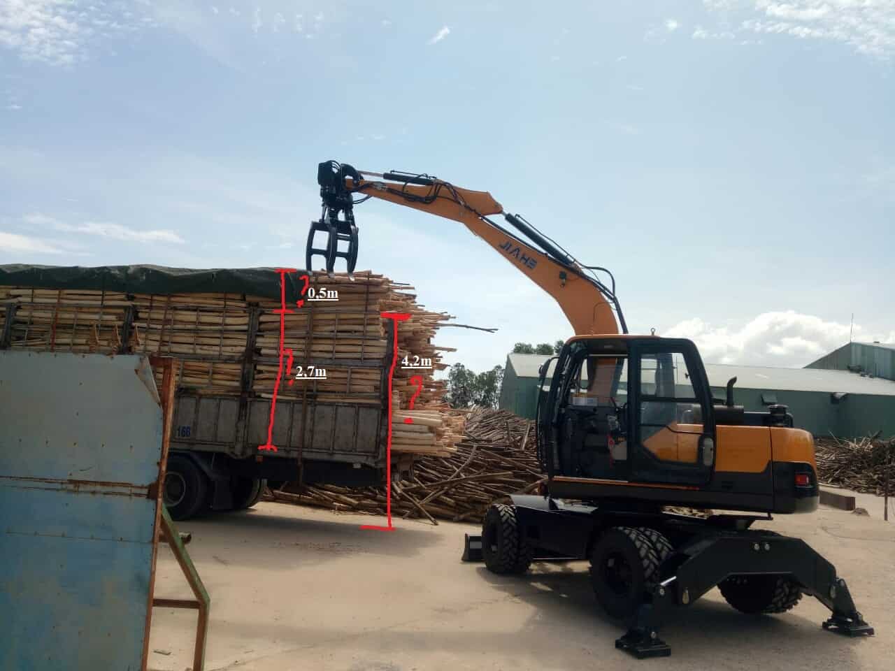 Chúng tôi xin giới thiệu: Máy xúc đào bánh lốp gắp gỗ JIAHE JHW70