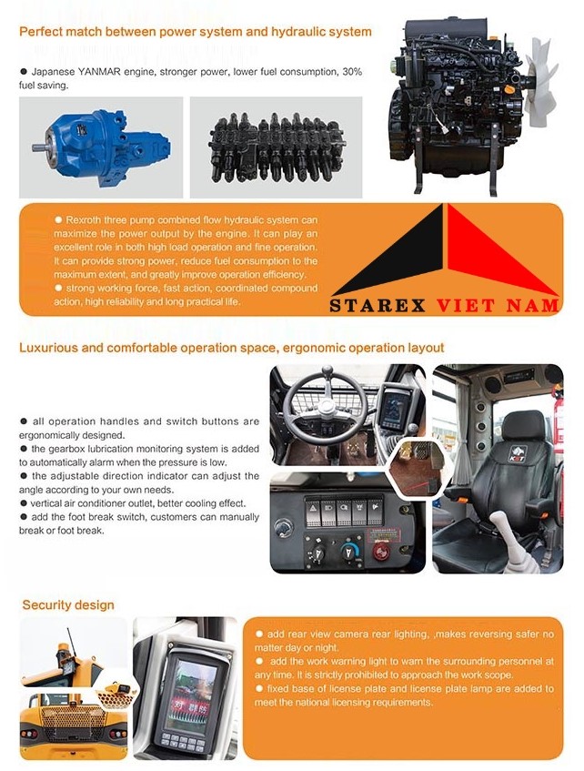 Máy đào bánh lốp gầu 0.3 m3 nhãn hiệu RHINOCEROS model XN75B có những ưu điểm nổi bật sau: