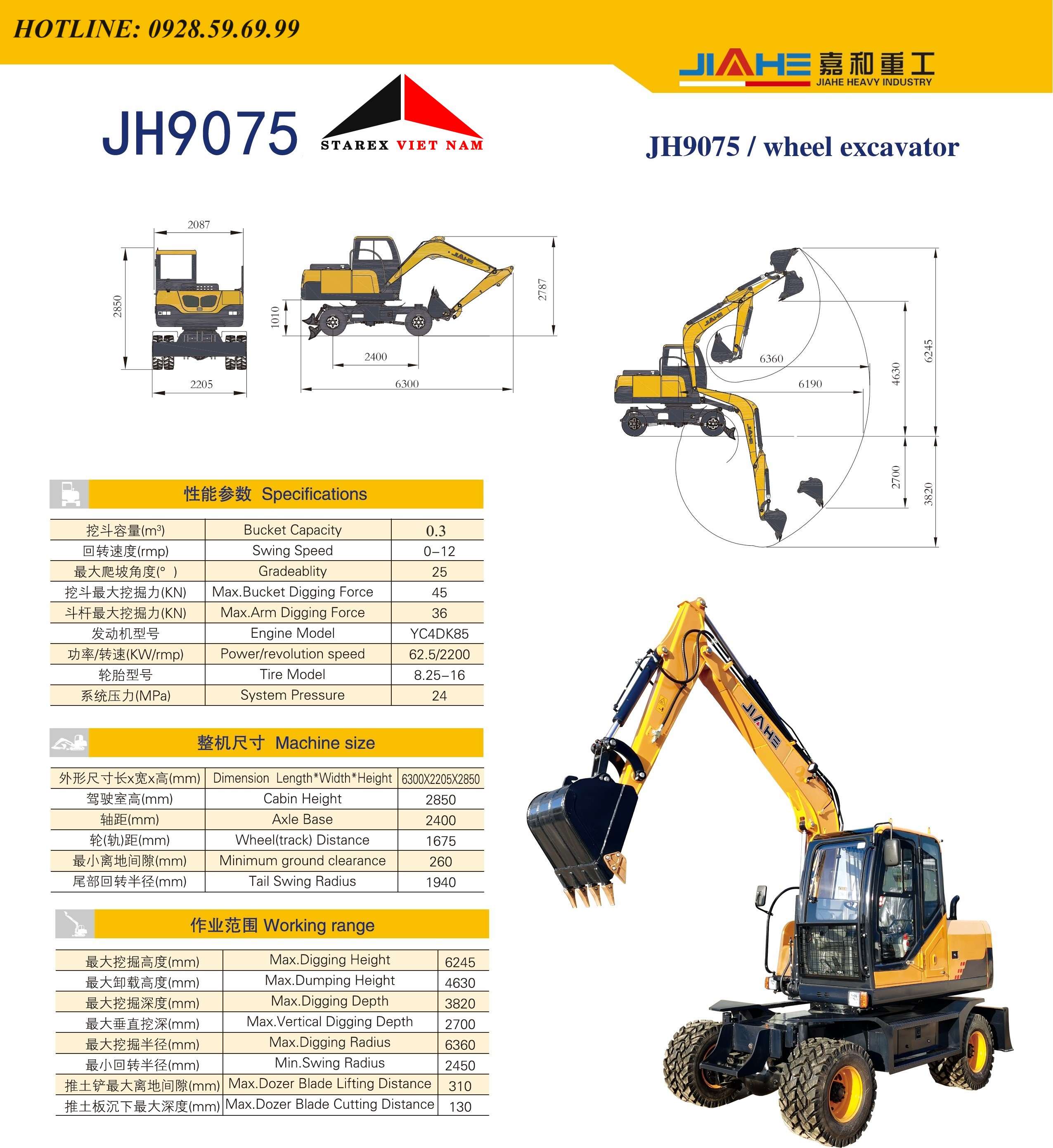 MÁY XÚC ĐÀO 03 BÁNH LỐP JIAHE JH9088 là dòng máy đào nổi tiếng Trung Quốc, với chất lượng ổn định cao, cùng rất nhiều tính năng hiện đại tích hợp trên máy. Máy được nhập khẩu nguyên chiếc, bảo hành bảo trì dài hạn, cùng chế độ hậu mãi cực tốt. Mọi thông tin chi tiết, xin vui lòng liên hệ: Hotline: 0928.59.69.99