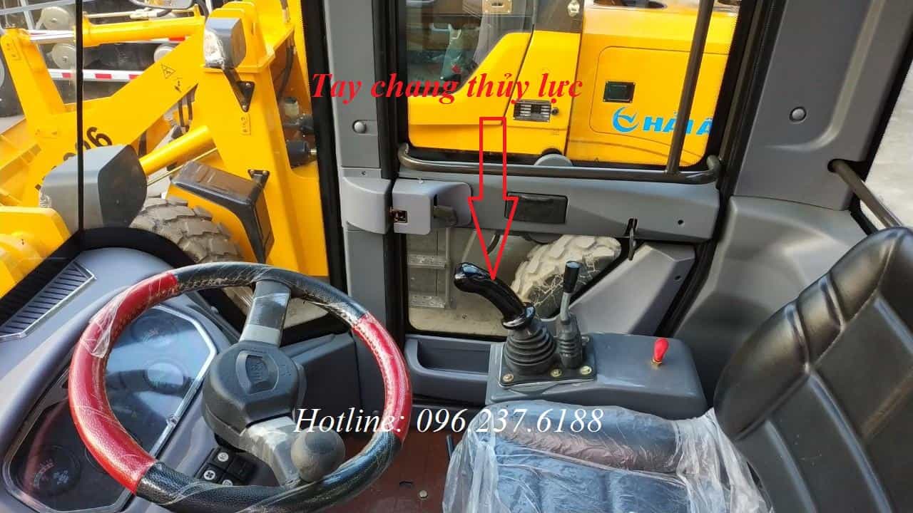 Cabin của máy được thiết kế rộng rãi, trang bị tay chang thủy lực.
