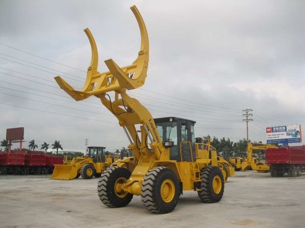 Máy xúc lật 3m3 Liugong 50CN có thể lắp cơ cấu gắp gỗ nâng 5 tấn. Dùng cho các nhà máy chế biến & sản xuất gỗ công nghiệp.
