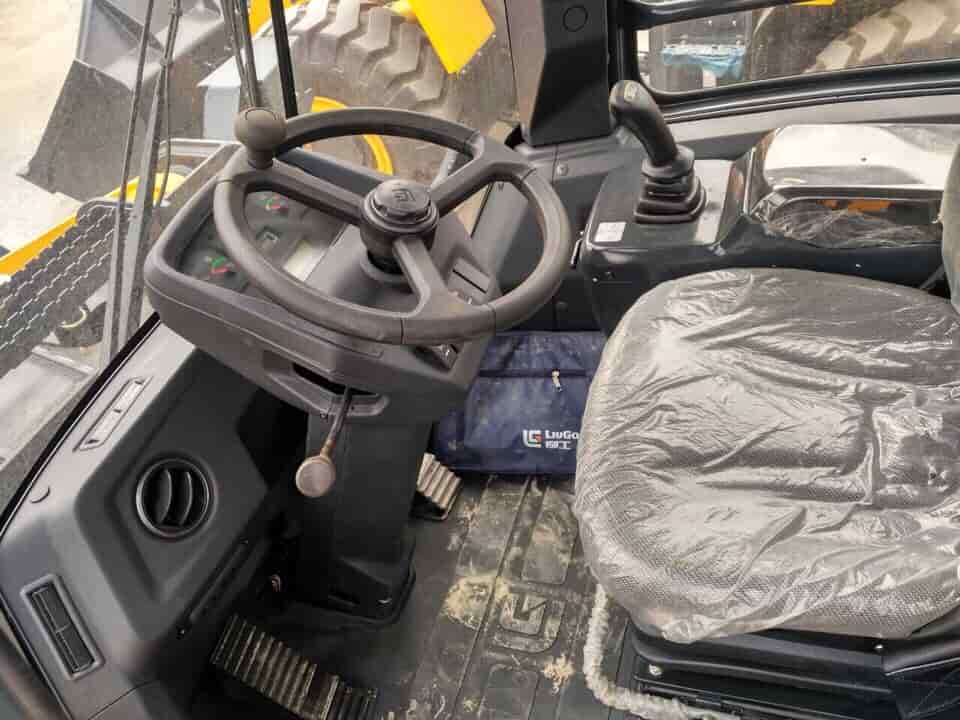Cabin của máy được thiết kế với khoảng không gian rộng rãi, ghế lại ngồi thoải mái tạo cho người lái cảm giác êm ái, thoải mái, không bị đau lưng. Bệ tay chang điều khiển được gắn liền với bệ của ghế việc này làm cho lái máy có tư thế ngồi điều khiển thuận tiên không bị với tay giúp cho thao tác xúc đổ vật liệu được chính xác.
