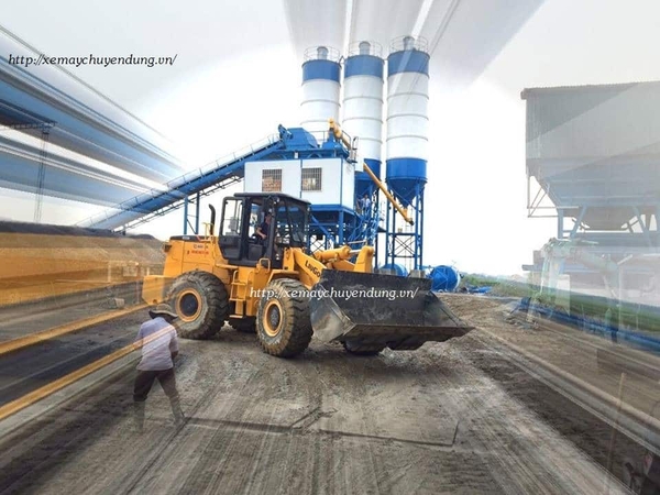 Máy xúc lật Liugong 3,6m3 model CLG855N đang hoạt động tại trạm trộn.