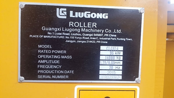 Etiket mẫu của xe lu rung CLG614 Liugong
