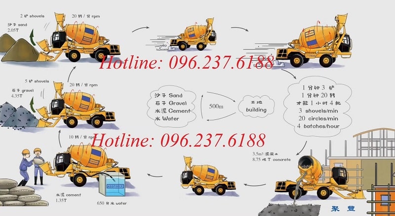 Sau đó là xả bê tông thành phẩm nhanh chóng, tiện ích theo các hướng.